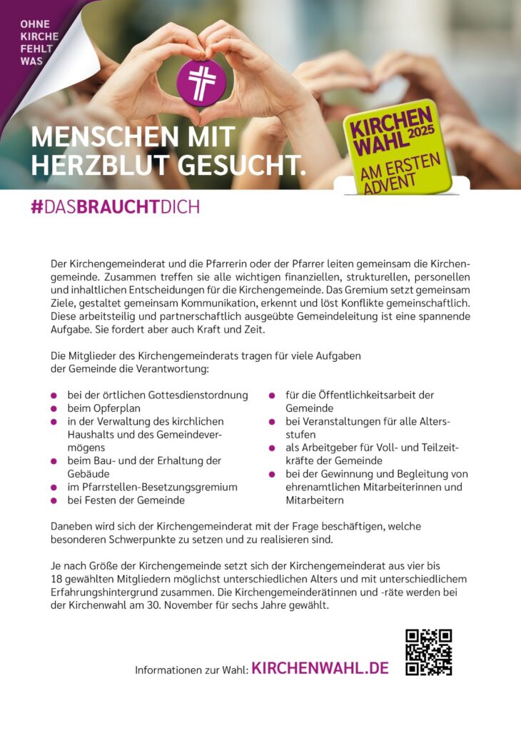 Wenn Sie Interesse an der Mitarbeit im Kirchengemeinderat der Verbundgemeinde haben, bitte sprechen Sie Pfarrerin Richter an oder melden Sie sich beim zweiten Vorsitzenden des KGR Herrn Schmitz: ernst-ulrich.schmitz@elkw.de